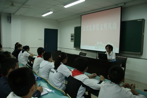 最后,教导处戴主任对全体学生干部提出了新学期的主要工作及工作要求,希望我们的学生做到“心中有爱、肩上有担、腹中有墨、胸中有识、目中有人、手中有艺”,把学生干部的工作当作“一项事业、一门学问、一个天地、一种生活”,在今后的生活中,努力学习,勤奋工作,不断提高自己各方面的素质和能力,争做文明市民,争当优秀干部。