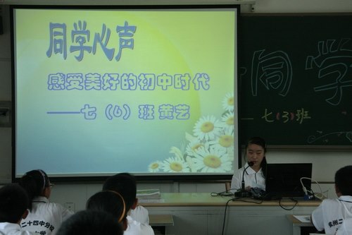 “小小的舞台,大大的我!” 6个班精彩纷呈的主题班会,为同学们提供了展示自我风采的舞台,围绕主题为班级群策群力,增强了班级凝聚力,自信大方的言语让人惊叹:“我想做班长,为班服务。”七(6)班想当班长的竟然有10位同学。同学们在成长的舞台上尽情表现着自己的雄心壮志。