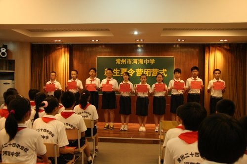 满载收获的闭营式。三天的夏令营虽然短暂,我们的同学却满载着收获。闭营式由教导处高萍主任主持,她充分肯定了此次九年级学生服务团为夏令营的辛勤付出,请七年级各班代表为他们赠送了纪念品并表达感言。校长助理赵敏慧宣布优秀营员名单并颁奖。优秀营员代表七(4)班赵宏开同学谈了自己的夏令营收获以及新学期的打算。最后教导处戴亚萍主任总结了本次夏令营的收获和存在问题,提出了新学期的希望与要求,希望大家能继续保持高涨的热情,投身到接下来三年甚至更久的学习、生活中去!