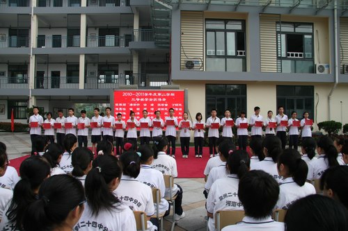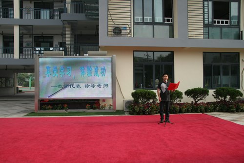面对成绩,河海人没有留恋过去的成绩,而是更加意识到肩上的重任。九年级同学代表丁文璐联系自身经历,作了题为《相信自己,为自己喝彩》的发言。她鼓励七年级同学尽快适应初中生活的紧张和匆忙;勉励八年级同学抓住这承上启下的关键一年,充分发挥自己的潜能;激励九年级同学努力拼搏、自信乐观,为了理想不断奋进。教师代表徐峥呼吁全校师生站在更高的起点上,教师做好教书育人的表率,同学保持竞争向上的面貌,共同创造河海中学的新辉煌。
