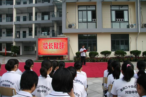 07点40分,全体师生相聚学校小广场,伴随着激昂的乐声,河海中学2011—2012学年度第一学期开学典礼拉开帷幕。本次开学典礼由教导处戴亚萍主任主持,她充分肯定了河海中学在过去的一学年取得的辉煌成绩,鼓励我们胸怀豪情,心存壮志,站在新学期的起点上,共同开创更美好的未来。