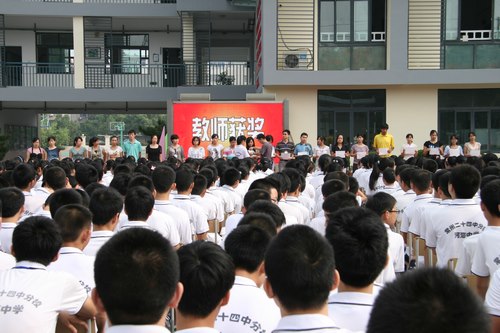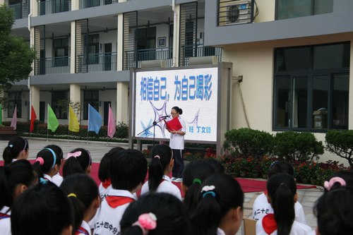 刚刚来到河海中学的新生代表郭子健同学畅谈了他们在夏令营的收获,确立了奋斗的目标,向全体师生展示了一个踌躇满志的新集体。