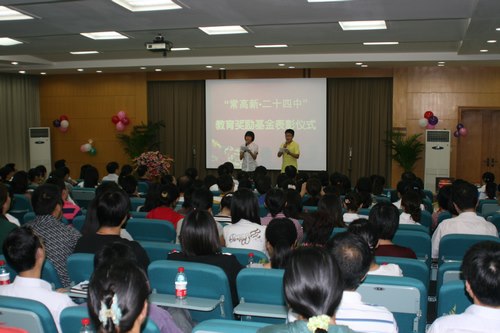 为进一步推动区域教育事业发展,持续深入加强学校教育,鼓励在校师生全面发展,今年五月,常高新集团面向二十四中、河海中学两校在校师生设立“常高新•二十四中”教育奖励基金,基金规模每年不低于50万元。在此次庆祝活动中,常州国家高新区管委会副主任、常高新集团总经理