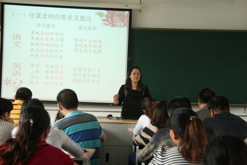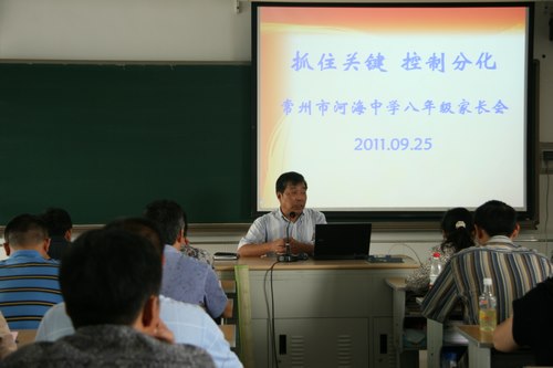 首先由蒋顺国校长代表学校作简要讲话。结合本次家长会的主题“抓住关键、控制分化”,蒋校长与广大家长交流了八年级学生的变化特点,希望家长们能充分认识到八年级的关键性,并积极配合老师们的教育工作,在家庭教育上引起高度重视。针对学生的现状,蒋校长也提出几点建议:良好的习惯养成是一个长期的过程,需要多方教育因素共同努力、形成合力;家长朋友要用亲身经历、自身形象教育并影响孩子,用正面的积极的话语和事例鼓励孩子;及时提醒,做好预防,及时检查,强化督促。短短的讲话,让我们看到了学校畅通家校联系、形成家校合力,共同把学生教育好、培养好的诚意。