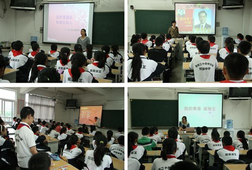 七年级班会活动形式多样,富有教育意义。“我的青春我做主”让学生们畅所欲言,在笑声中感悟了普通话的魅力;“九月光荣榜”带学生们回顾了九月的得失,学生们获益良多;“迎接金色十月,我们准备好了”更是把学生们的激情推到了顶点。一阵阵的掌声,一次次的交流,让学生在快乐中学习普通话,在学习普通话的过程中升华了爱国情怀。