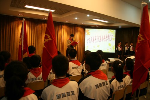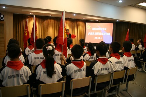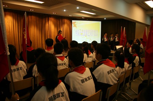 伴随着铿锵的出旗曲,鲜艳的大队队旗展现在了少先队员面前,少先队员们高唱《中国少年先锋队队歌》,活动的序幕拉开了。