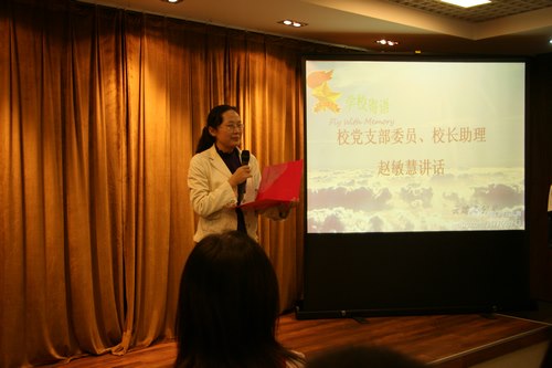 校党支部委员、校长助理赵敏慧作了讲话。她首先对三位嘉宾的到来表示了衷心的感谢,并代表学校提出三点要求:少先队、各中队组织好,辅导员、中队长配合好,少先队员们表现好。
