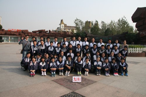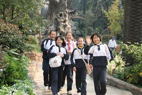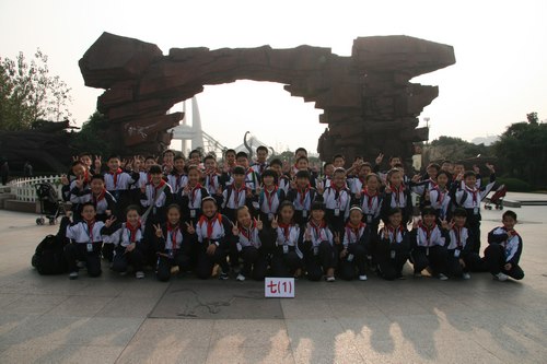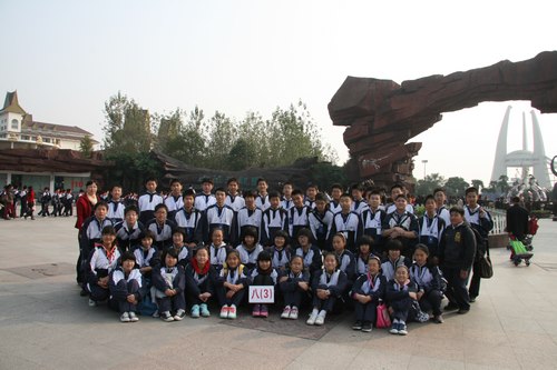 随后,三个年级的同学便开始步行前往恐龙园,与绿树结伴,与车辆同行,我们一路欢声笑语,却又排着整齐有序的队伍。大约40分钟后,恐龙园的标志性建筑赫然耸立在我们眼前,各种各样的恐龙引起了我们探究的兴趣。在全班合影留念后,我们便开始一天的实践之旅。
