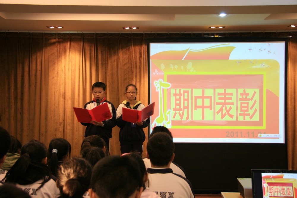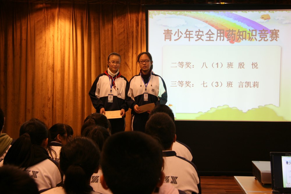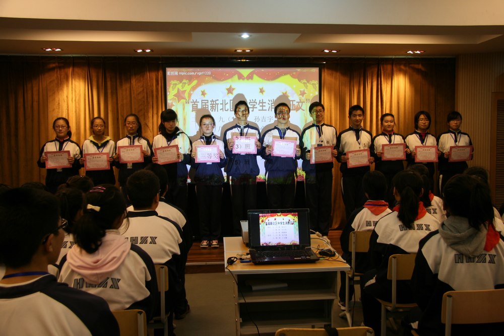 在表彰中分享成功。在这半个学期中,同学们积极参与校内外的各项比赛、活动,并且一些同学在其中脱颖而出,取得了优异的成绩。大会首先对这些同学进行了表彰:无论是“首届新北区中学生消费主题征文”评选活动,还是常州市“我们爱科学”动漫绘画创意大赛;无论是青少年安全用药知识竞赛,还是校综合实践活动报告,那些累累硕果都在彰显着聪明能干的河海学子们奋斗不息、收获不止。
