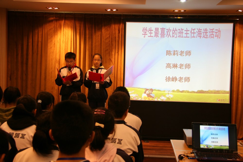 特别是激动人心的年级十佳亮相,更让会议达到高潮,他们用自己的成功告诉同学们:机会垂青于有准备的人,相信自己,明天会更精彩。当然,这些成功亦少不了老师的引导和指导,在表彰学生之余,主持人也宣布了我校“学生最喜爱的班主任海选活动”评选结果。