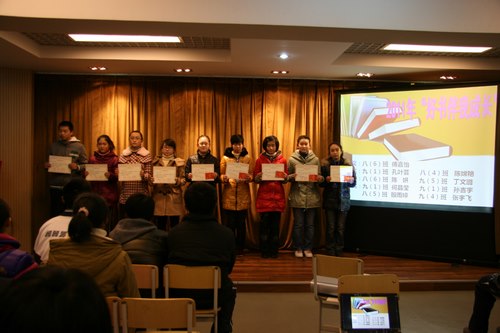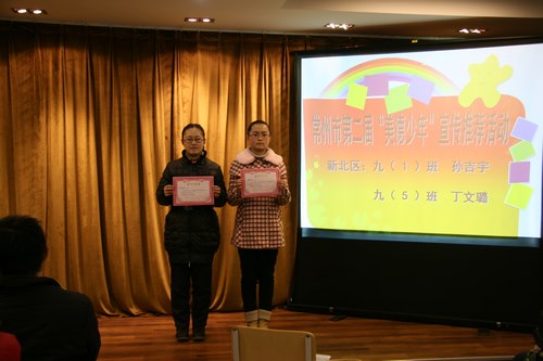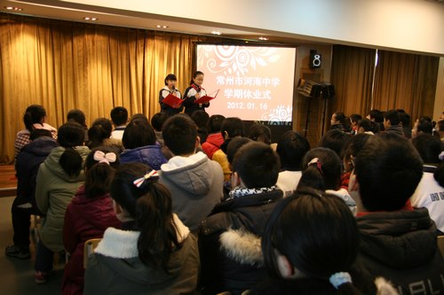 活动首先为新北区美德少年、江苏省金钥匙科技竞赛、江苏省第11届中学生作文大赛、“好书伴我成长”常州市中小学生暑期读书征文活动、第八届“星星火炬”全国青少年英语风采展示活动、新北区中学生民防地震知识征文比赛、新北区中小学生冬季三项比赛中获奖的同学颁奖,他们的优异表现彰显了河海学子的风采。校长助理赵敏慧、贺文明,教导处高萍副主任分别为一、二、三等奖学金获得者颁发了获奖证书和奖学金,学校分别对三个年级的三好学生和各单项奖获得者进行了表彰。踏实造就全面发展,素质凸显个性特长,这些同学为全体学生树立了榜样,激励着更多的同学奋发向上。接着学生会宣传委员八(6)班张明纯同学布置寒假有关活动,九(1)班孙吉宇同学提出了充分利用好这个寒假相关建议。教导处戴亚萍主任提出了寒假要求,引导学生过一个平安、快乐、文明、健康、和谐的假期。