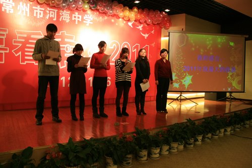 他精炼盘点了三大收获:2011年,是我们自强不息、再上台阶,办学目标更加清晰的一年;2011,是我们众志成城,再攀新高,各项工作更加规范的一年;2011是我们成绩斐然、再创辉煌,学校形象更加彰显的一年。精心构思了三句心语:感怀我们辞旧的可圈可点的2011年;感动于我们年级组自编自导自演的河海春晚;感谢各位教工在兔年的团结奋进、辛勤付出。真诚酝酿了三个心愿:一帆风顺精神好;两全其美生活好;三头六臂工作好。