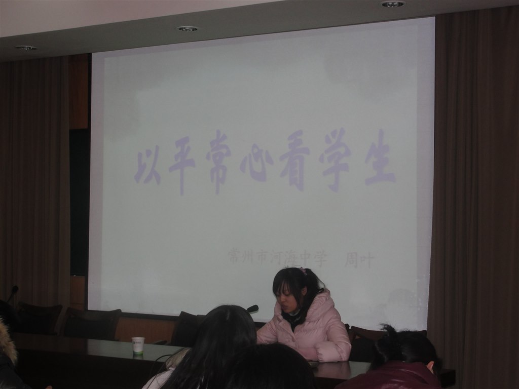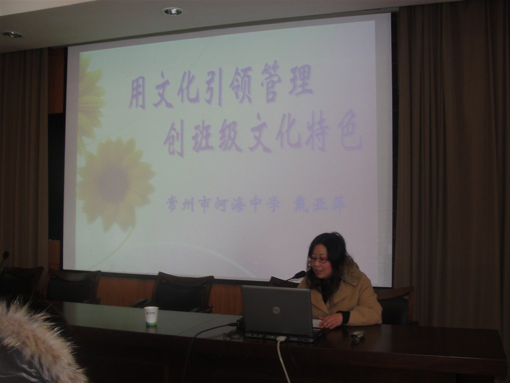 随后四位班主任老师根据自身班级文化建设中的探索,交流了有效的做法。王鑫老师春风化雨始于心,讲述了运用“十五项意义非凡的成功法则”,利用“破窗法”等几种心理效应在班主任建设中的有效作用;史旭敏老师则以“在班会活动中成长”为内容,介绍了如何针对班级现状问题和根据学校要求同学申报,有效召开动之以情的教育班会。周叶老师畅谈了作为一名新班主任从实践探索中认识到“以平常心看学生”,构建和谐师生关系,提升自己班主任管理水平;戴亚萍老师则从“精神文化感染人、管理文化凝聚人、德育文化培育人、环境文化熏陶人、兴趣文化激励人”五个角度,讲述了河海校区“用文化引领管理,创班级文化特色”的做法。