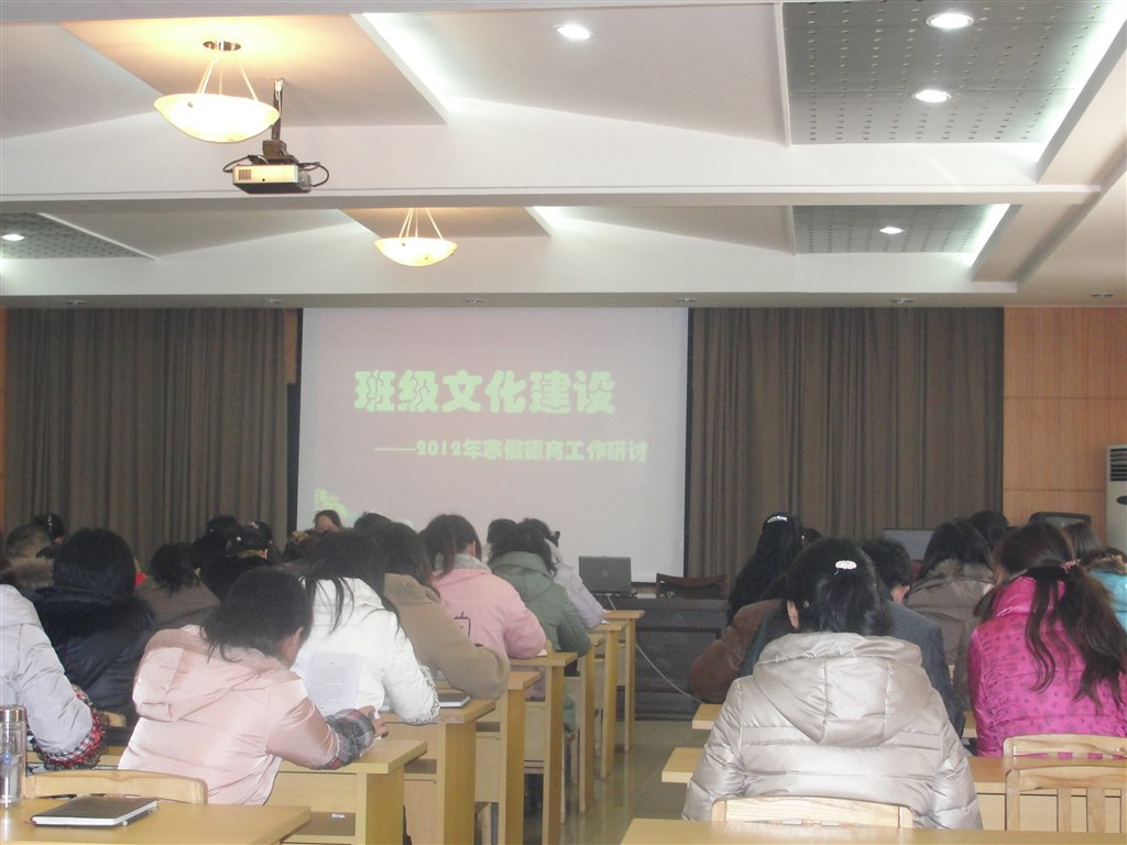 冬日的寒意挡不住我们前行的步伐,2012年02月02日上午,二十四中和河海中学两校区“2012年寒假德育工作研讨会”在二十四中报告厅举行,全体行政领导和班主任齐聚一堂,共谈班级文化建设,共谋德育工作新发展。会议由二十四中教导处过炜宇主任主持。