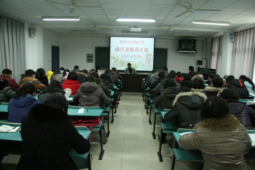 蒋校长首先强调新学期重点工作举措,一是抓规范,提升办学水平,要深入贯彻江苏省中小学管理规范,加强学籍管理和规范收费,全体教工要时时、事事自觉规范执行。二是抓内涵,强化发展优势,要创建优质学校,推动主动发展,加强文化建设。三是抓队伍,提升师资素质,要把2012年作为青年教师成长年,通过岗位练兵、建立档案、积累资料、成果汇报等促进教师成长,确保全体教师真正做到课堂教学的高效。四是抓质量,推进素质教育,推进教研组、备课组的建设和校本教研活动,深入研究有效练习设计与科学讲评,完善校本课程和社团工作。