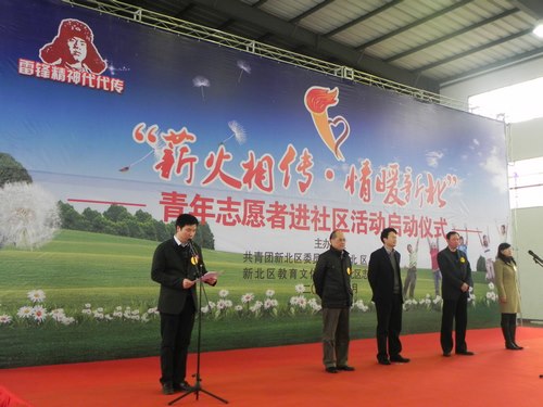 启动仪式上,区领导作重要讲话,表达了对青年志愿者活动的殷切期望,并激活了“薪火相传 情暖新北”青年志愿者进社区活动启动标志。青年志愿者们高举右拳,集体宣誓:热忱投身到志愿服务中来!我校作为此次活动首批十家试点中学,与兰翔社区成为结对单位,并共同接受了薪火青年志愿者服务站授牌。