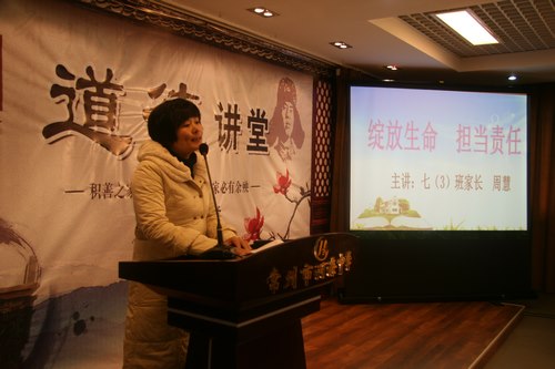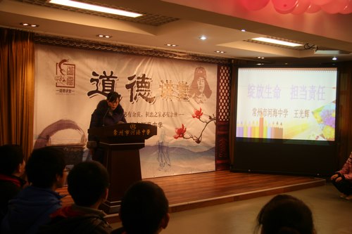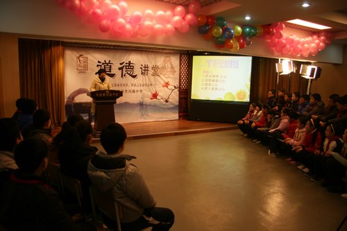 此次讲座,以贴合学生年龄特点的语言,用《弟子规》中的内容结合河海中学学生的实际,生动地讲述了“做一个有道德的人”真的很简单也很快乐,比如说,《弟子规》教我们如何做人;如何把爱用于自己的日常生活。牢记《弟子规》的教诲,把孝悌谨信泛爱众亲仁落实到实处,落实到日常生活行为当中。