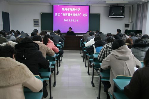 通过召开落实“教育服务深化年”会议,全体教工本着做不到的绝不夸夸其谈,能做到的必将一丝不苟的河海精神,扎实开展“教育服务深化年”各项活动,促进学生全面发展和个性发展,促进青年教师教育水平、教学能力提升,促进学校规范主动发展,为全区经济社会发展提供良好的教育服务而尽最大的努力、作最大的贡献。