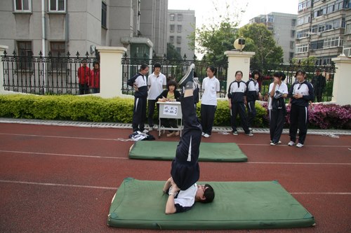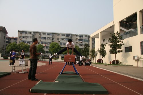 学校对本次模拟考试高度重视,特别邀请历年参与中考体育评分的裁判员来我校进行评分指导。本次模拟考试按照《2012年常州市体育中考秩序册》进行编排、分组,考试的项目有跳绳、立定跳远、实心球、篮球、排球、五步拳、跳山羊和肩肘倒立。学生们非常珍惜此次模考机会,在运动场上认真对待自己选择的考试项目,充分发挥自己应有的水平,互相帮助、互相鼓励,表现出了不俗的成绩。模考结束后,裁判员们对模考中暴露出来的问题进行了认真总结和理性分析,对我校的优势项目予以充分的肯定,为最后冲刺阶段的强化训练指引了方向。