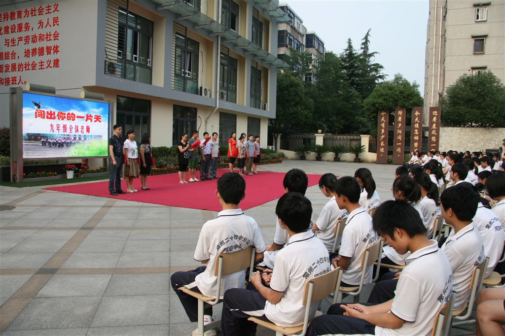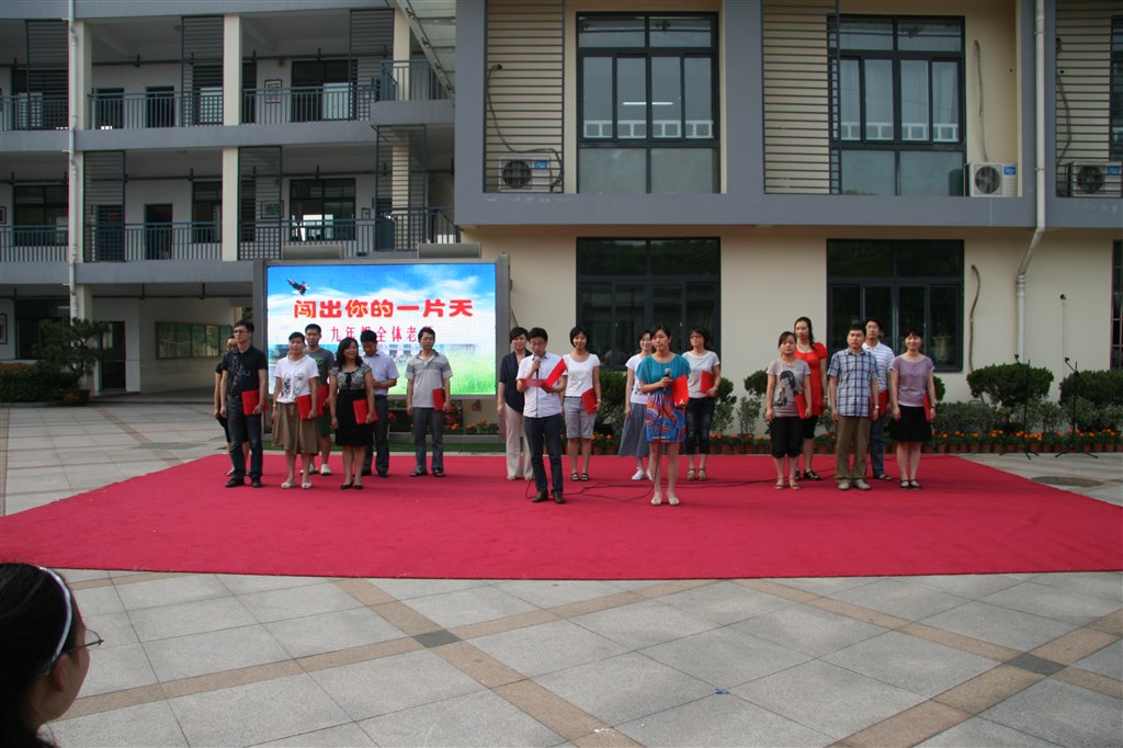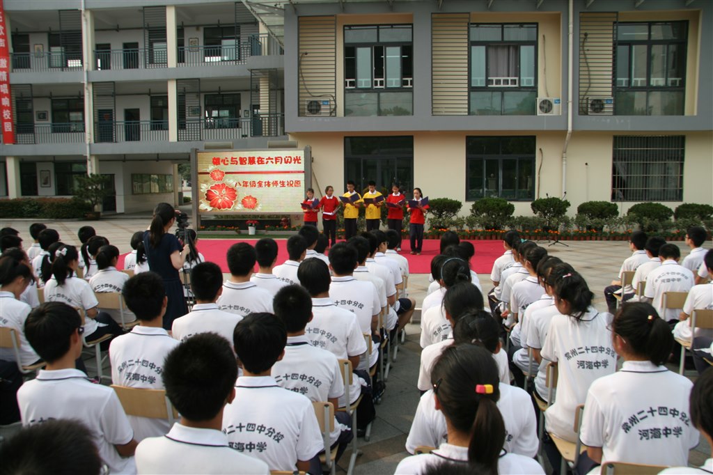 三年来,老师与同学们朝夕相处、心手相牵、风雨与共,考试学科18位教师,分别代表学科组送给同学们一份最珍贵的礼物。语文组以文章怡情、以诗词论道,带领同学们畅游文学天地,领悟拼搏进取;化学组以化学方程式完美演绎了成功的实验制法,激励同学们用勤奋、方法、坚持为原料来铸就成功;数学组赋予数轴、圆、射线新的含义,鼓励大家用努力和坚持不懈,拓展成功的长度;政治组呼吁大家传承民族精神,关注自身健康成长,用勇气和智慧实现人生的可持续发展;历史组谈古论今,将同学们视为出征的壮士,以“有志者事竟成,苦心人天不负”振奋同学们的士气;英语组以甜美的嗓音,唱出了不一般的祝福——“Be the one that you wanna be!” ;物理组自拟一副对联——“神舟九号直指苍穹,对接天宫扬国威;河海学子乘风破浪,成就学业铸人生”,对联中字字彰显良苦用心,句句蕴含真情实意。老师们立足学科、精心撰写、深情演绎,共同祝愿同学们“中考创佳绩,闯出一片天”,令人耳目一新的考前激励,充分激发了同学们的斗志。