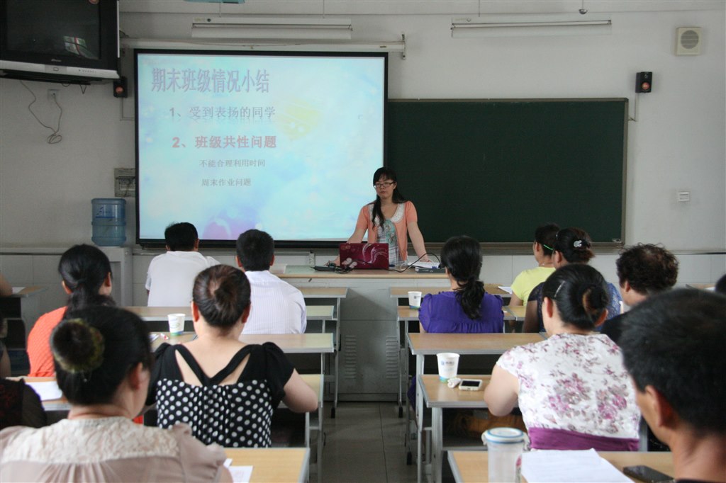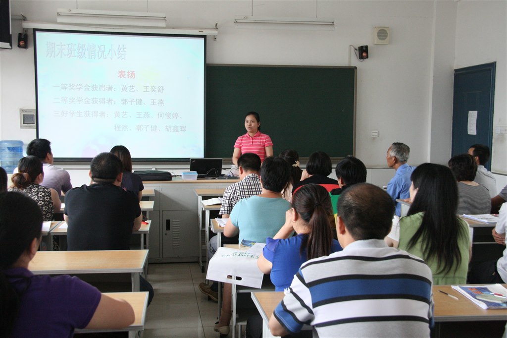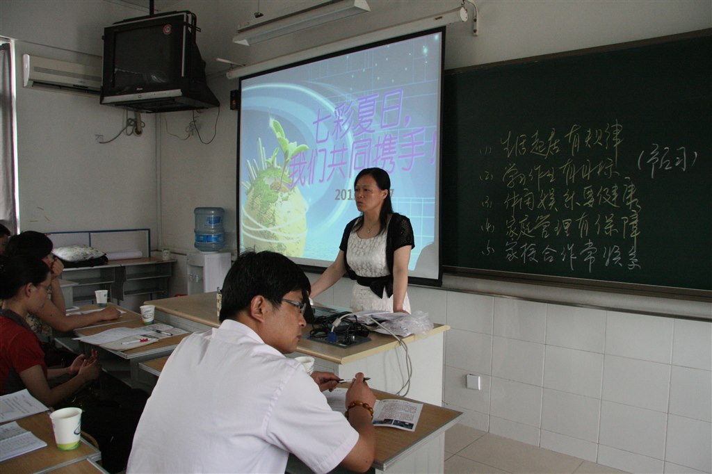 随后学校教导处结合年级实际情况,盘点了一学年来各班表现突出的同学,总结了他们身上的闪光点,号召家长鼓励自己的孩子向他们学习。同时结合我校《“七彩的夏日”暑假安排表》和《2012年暑期学习建议》,为家长们进行了重点解读,让家长明确了解同学们暑假的学习任务,从而能更好地监督自己的孩子的学习计划的制定。最后,各班班主任根据本班实际,介绍了期末调研情况、班级共性问题以及暑假的几点提醒。