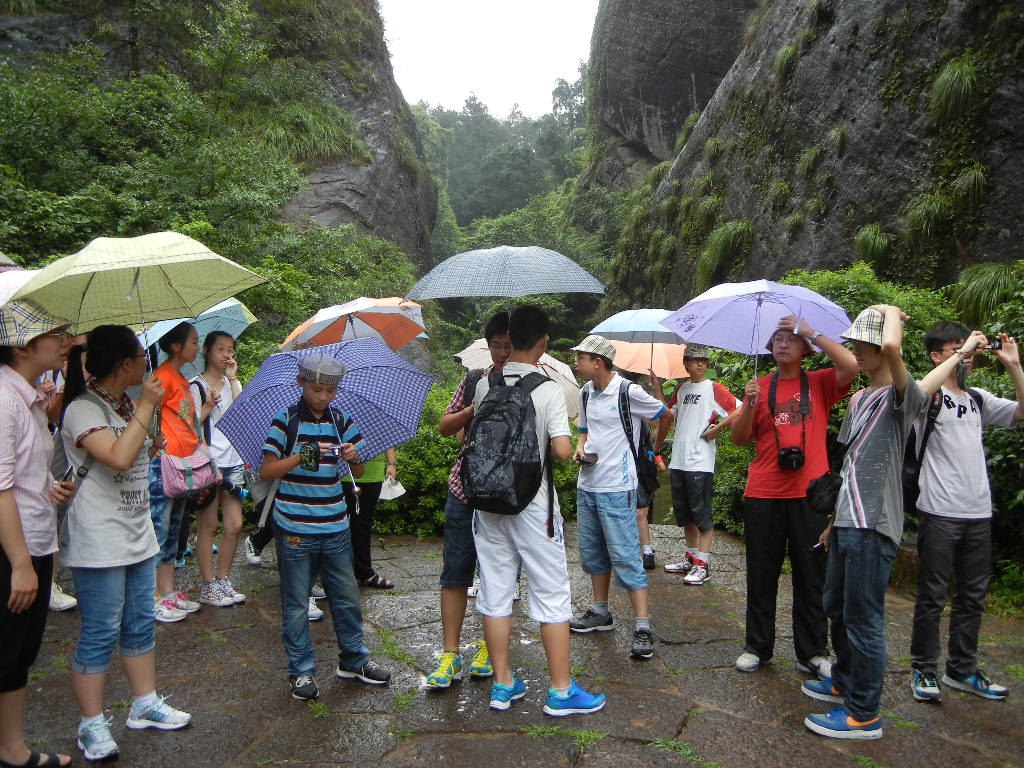 15日下午,夏令营举行了简短的开营仪式。开营仪式后,各连队进行破冰集训:自我介绍、选举连长,安排节目。短短的一个下午,三校的学生们交流探讨、彼此熟悉。16日清晨,全体师生乘车前往武夷山景区。下午,营员们游览了大红袍景区,感受“茶之韵味”,行走林间,品味着中国传统的茶文化。17日上午,在雨水的洗礼下,营员们来到了险峻的天游峰进行攀爬。过程中,他们互相鼓励,互相支持,没有一人轻言放弃,最终都登上了山顶。山下云气如海、卷舒不定的壮观画面深深地震撼着登顶者。“小小竹排江中游,巍巍青山两岸走。”午饭后,竹筏漂流的时间到了。九曲溪萦回曲折,贯穿于群山之间,如同一条巨龙,熔注了武夷山的灵气与精华。营员们在山水中感受着大自然的无限魅力。晚上七点,联欢活动开始了。同学们说唱跳演个个在行,节目亦是精彩纷呈。一场晚会高潮迭起,笑声不断。学生们在欢乐中懂得了合作的真谛。18日,在游览了虎啸岩景区后,全体师生返回常州。