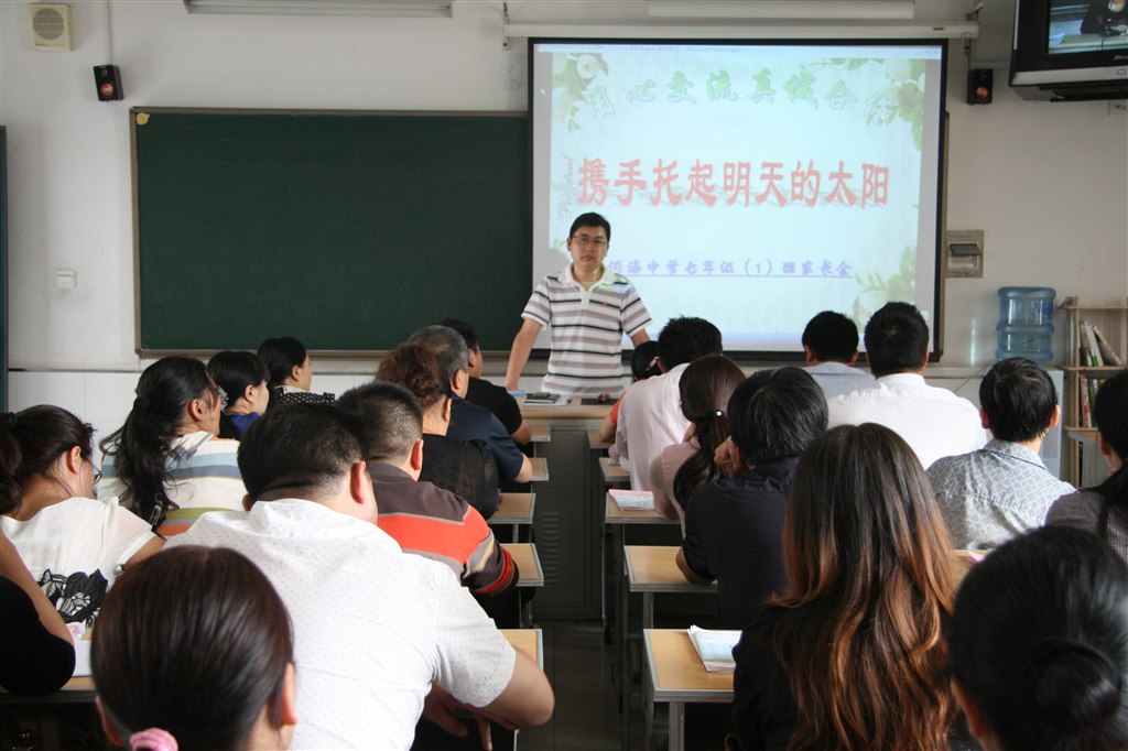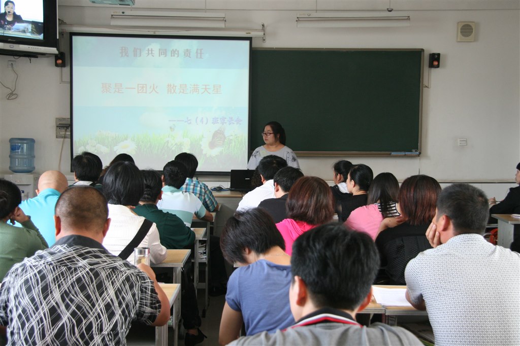 三、因班制宜,班主任引领。七年级六个班的班主任与家长们交流,各班的主题立意深刻,内涵丰富,比如“家校合作 齐力共赢”、“家校携手促发展”、“家校同心,迈好初中第一步”,一个个主题深入人心;随后展示了学生日常行为习惯的表现,一张张照片再现了学生良好的精神面貌。最后出示了七年级各学科的学习建议和班级情况分析,把家长会推向了高潮。