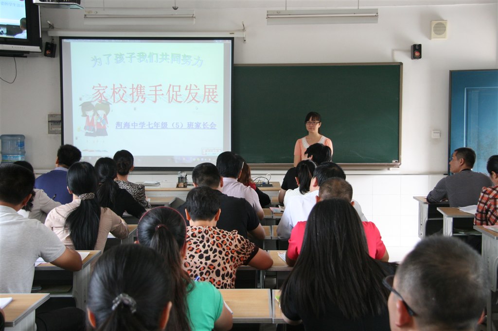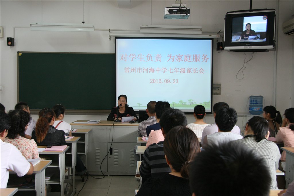 二、行政推动,有效管理,共创双赢。校长助理赵敏慧作了题为《对学生负责 为家庭服务》的讲话,她先向家长们介绍了河海中创办以来所取得的办学成就,然后从“在多彩活动中体验、在精细管理中成长、在家校合作中共赢”三个方面具体介绍了河海中学的教育理念和育人措施,并真心向家长们表达学校的希望:加强家校有效沟通,促进师生共同成长,同心协力,共铸孩子们美好的明天!朴实的话语饱含着热情,引起了家长们的共鸣,并报以热烈的掌声。