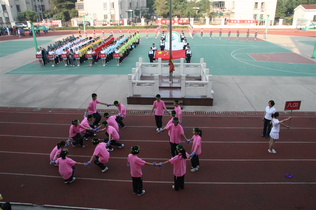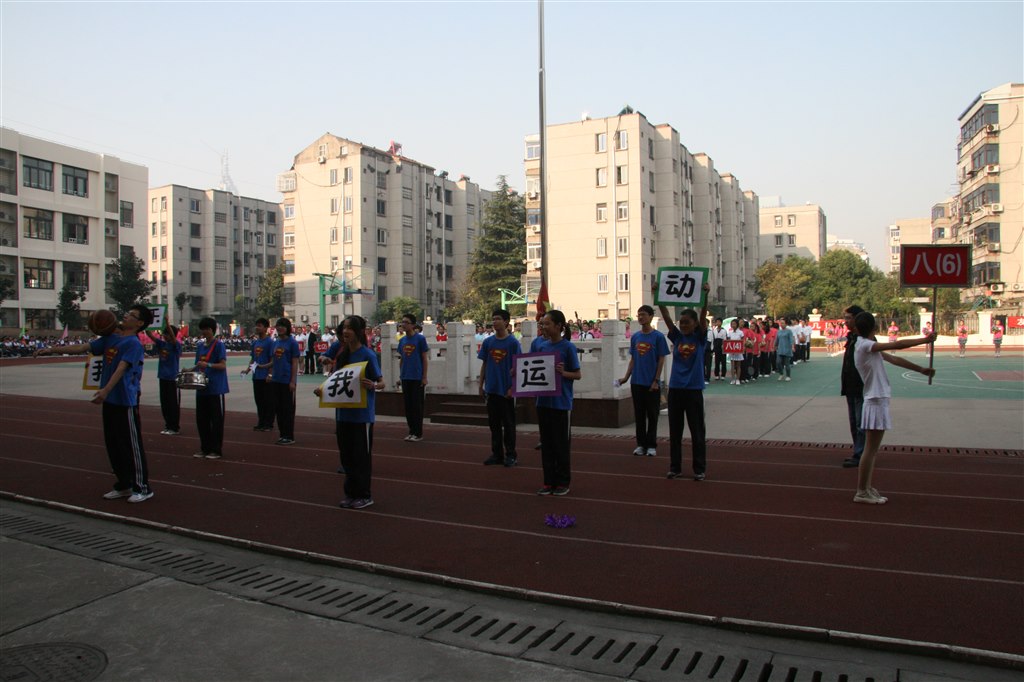 别样的风采,高昂的斗志,现在向我们走来的是 八(6)班代表队,48颗心,48份情,48个意气风发的学生组成了这个活力四射的集体。这是一个不惧挫折、挑战困难的集体,他们精神饱满,气宇轩昂,到处可见的是他们的朝气和必胜的信念。让我们留一份期待,存一份期盼,共同祝愿他们在运动会中取得优异的成绩!