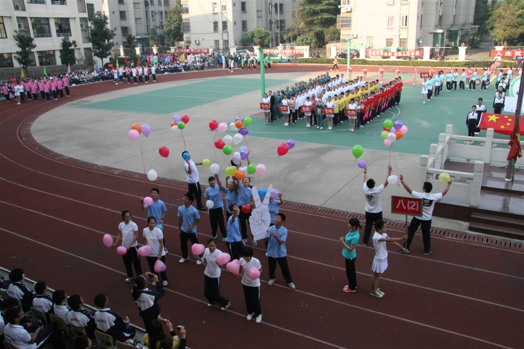 本次运动会以 “在阳光下奔跑”为主题,比赛项目涉及会徽设计、体育小报、广播操、棋类、乒乓球、田径六大类,共14个小项。学生踊跃参与,参赛人数达到671人,创历史新高。