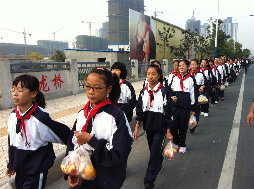 八点,大家兴致勃勃,集队开始了徒步之旅,一路上,我们与绿树结伴,与车辆同行,充满欢声笑语却又整齐有序。半个小时后,我们便看到了恐龙园的标志性建筑,大家显得愈加兴奋,开始了一天的实践之旅。