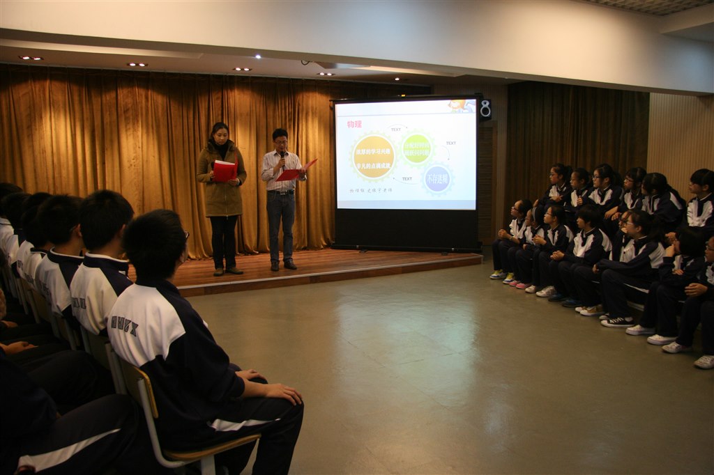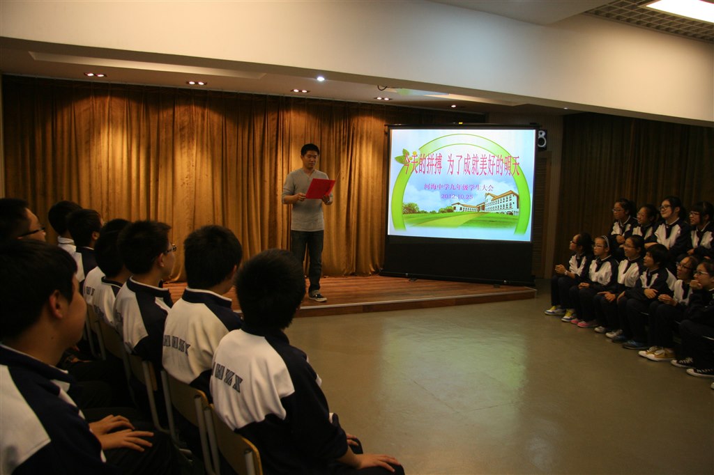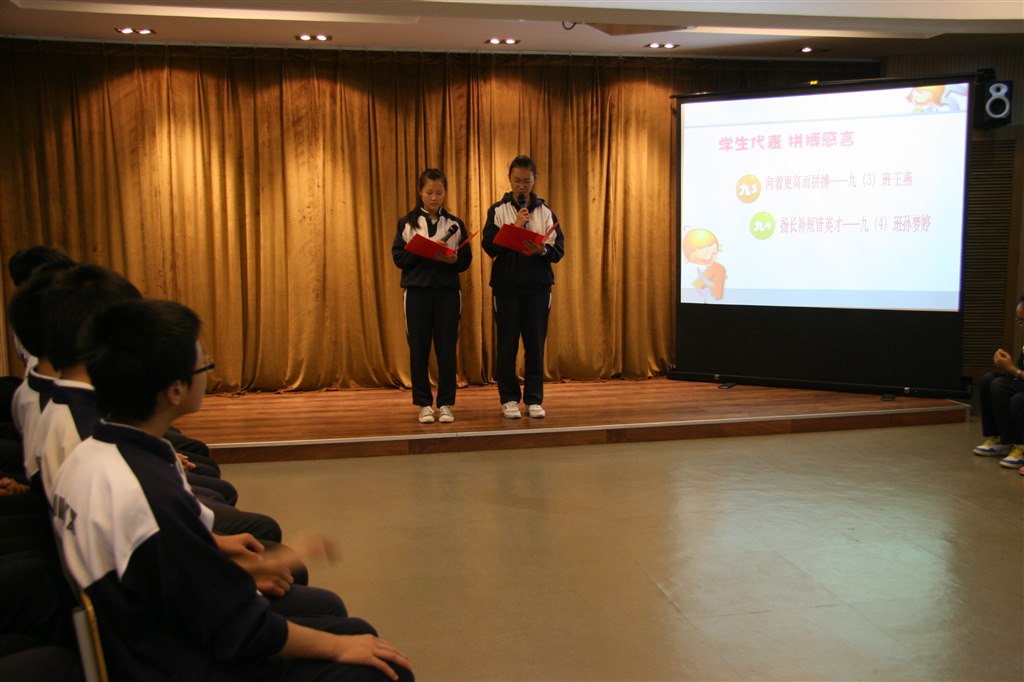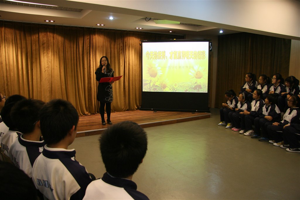 笃志砺行织理想,披坚执锐画未来。10月25日下午第四节课,在我校演播厅召开以“今天的拼搏,为了成就美好的明天”为主题的九年级学生大会。会议由年级组长徐峥老师主持。