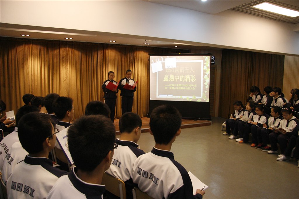 期中调研在即,为充分调动学生的学习积极性,合理安排学习时间,提高学习效率,11月05日,河海中学八年级组织召开了期中动员大会,会议由年级组长毛德庆老师主持,八年级全体师生参加了此次会议。