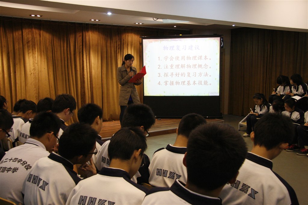 会议一开始,针对不少同学反映时间紧、内容多、复习无从下手等问题,八年级各学科组的老师们群策群力,给予了同学们复习方法上的指导。高莉老师要同学们养成“不耻下问”的学习习惯;陆金伟老师传授数学复习“寻方法、寻技巧、抓基础、抓漏洞”的经验;王丽君老师指导同学们要“着眼课本、明确重点、以点带面”地复习;毛叶老师指点同学们复习要做到“四清”;陈莉老师更以具体题目为例,介绍应对小技巧。对于这些高招妙点,同学们听得仔细,记得详细,但还需会后细细“咀嚼”和“消化”。