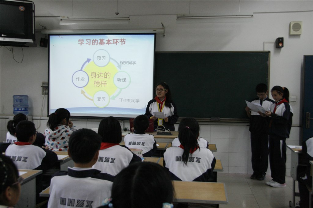 看着学弟学妹们一张张认真的脸,我能想象出他们平时学习身边的榜样、插上理想的翅膀的行动。接下来,我们又一起分析了自己身上存在的好习惯和坏习惯,并填写了学习习惯治疗卡,相信他们定对自己许诺的誓言、签写的约定自信、勇敢而无畏。