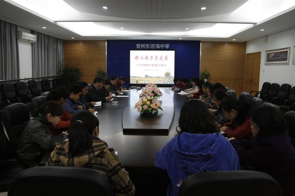 蒋顺国校长作了小结发言,对八年级今后的教育教学工作提了三点建议:一,从信心抓起,希望我们的同志在困难时要看到光明,要提高我们的勇气;二,从上课抓起,精讲多练应作为每位老师在备课和教学中坚持的核心理念;三,从习惯抓起,注重抓生活习惯,以良好的生活习惯来促进学生学习的进步。
