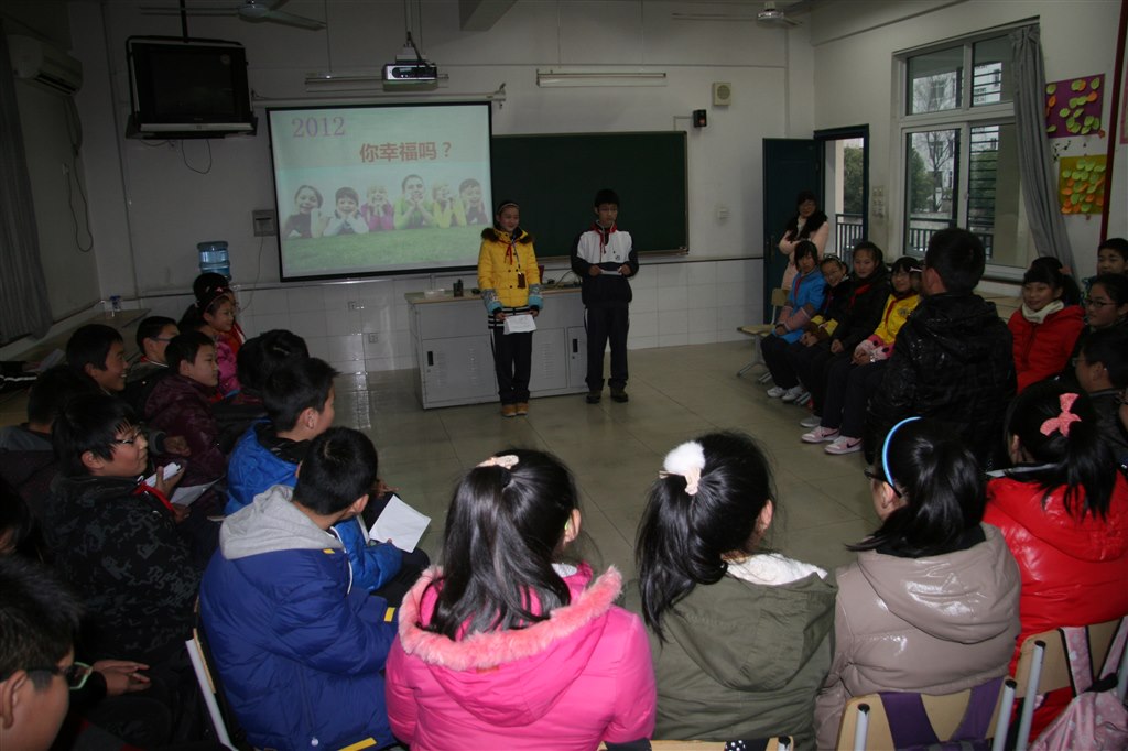 围绕统一的主题,各班同学认真准备、精心组织、热情参与,为我们呈现了一堂堂丰富多彩而各具特色的主题班会。一曲热情奔放的骑马舞,带领我们重温2012的劲爆时刻;一首欢快轻盈的《铃儿响叮当》,表达了我们对新年的美好憧憬;一篇激情澎湃的《少年中国说》,抒写了我们心中的责任与梦想。还有丰富精彩的才艺展示,生动活泼的游戏互动,发人深思的视频观赏……班会生动而又富有教育意义,同学们在欢声、笑语、沉思中回顾了过去一年的幸福时光,表达了对父母、同学、老师和学校的美好祝福,更加深了对成长的理解,体会到在成长的过程中,我们要学会坚持,要提升修养,更要承担责任。