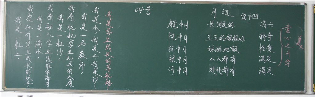 趁热打铁显本领。最后青年教师们展示了各自的基本功,根据自己的教学内容分别进行了板书设计。黑板前他们认真书写,既是实实在在,又具有一定的艺术性,让人感觉到夯实基础的重要性。
