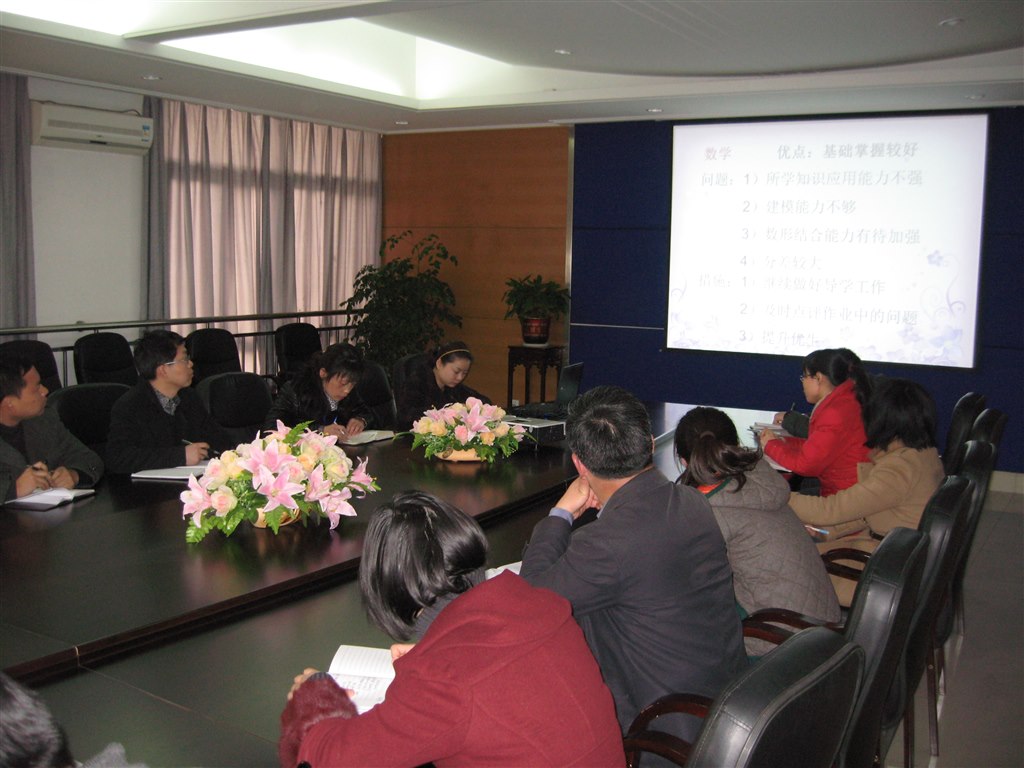 一、备课组内精分析,找准问题明方向。各备课组代表就阶段调研情况交流了自己的意见,包括分析学情、阐述亮点、明确不足、提出措施。每门学科特点虽有不同,但也存在不足:基础有待加强、听课习惯有待改进、审题能力需要提高、学习兴趣需要培养。针对不足,各备课组也已制定了相应的措施:加强课堂教学、促进习惯养成、培养综合能力、缩小两极分化。