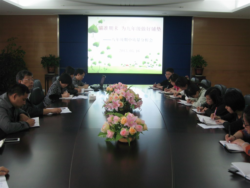为了分析和总结前一阶段教学中的得失,找到解决问题的策略,也为进入九年级做好准备,河海中学八年级组于05月16日下午,针对刚刚结束的期中调研,召开了阶段分析会,会议由年级组长毛德庆主持。会议分为两大议程:
