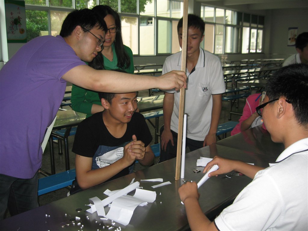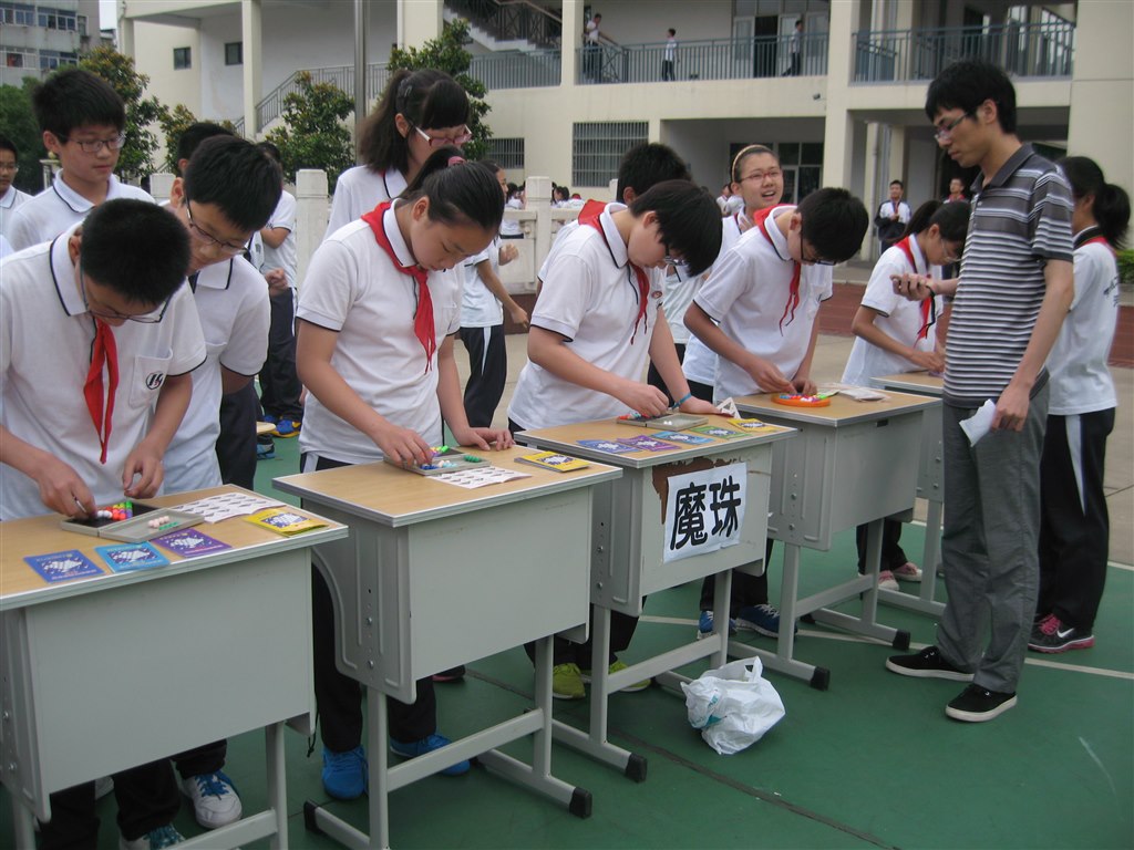 本届趣味科技节的挑战项目更是精彩纷呈,既增长了学生的见闻,又拓宽了他们的知识面。可要说起最让人感兴趣的活动,那就要算在校内举办的七个科技节挑战项目了。七年级同学挑战的项目有魔珠、魔方、节能建筑和高空速降的鸡蛋撞地球。八年级同学挑战的项目有九连环、花之探秘、越高越好和紧急弹射——水火箭。传统的魔珠、魔方和九连环项目充分开发了学生的智力,培养了学生爱思考、爱动手的好习惯。鸡蛋撞地球和水火箭项目,让学生自己动手设计、制作,培养了他们的创新精神和团结合作的意识。这次活动学生参与面广,参与热情高,不断改进,精益求精。