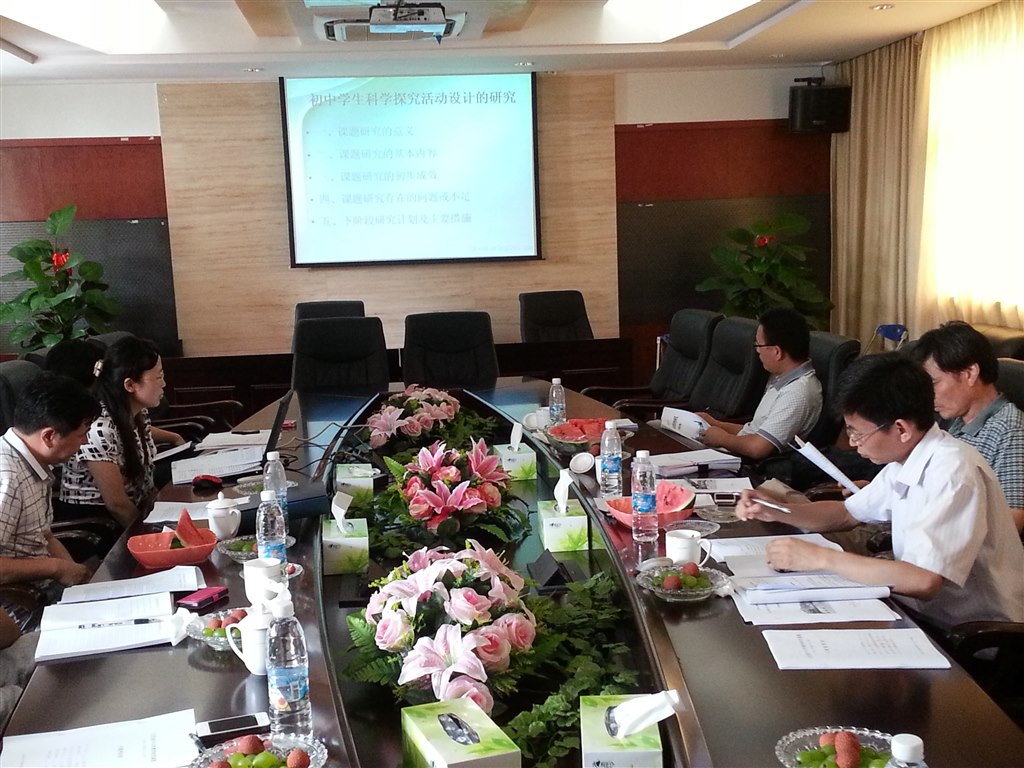 会上,课题组负责人赵敏慧代表课题组从课题研究背景、课题研究基本内容、课题研究初步成效、课题研究后续安排等四个方面进行了汇报。汇报后,每个评估组专家对汇报做了总结反馈。市教研室专家充分肯定了我校课题组在课题研究、高效课堂、论文等方面所做出的成绩,同时,也提出了几点建议:一是对“科学探究活动”与“学科实验”要加以区分说明。二是内容的表达方式要有所改善,突出科学探究活动中各个要素的设计。三是要从各学科典型的案例中抽取科学探究的一般规律,并加以拓展。