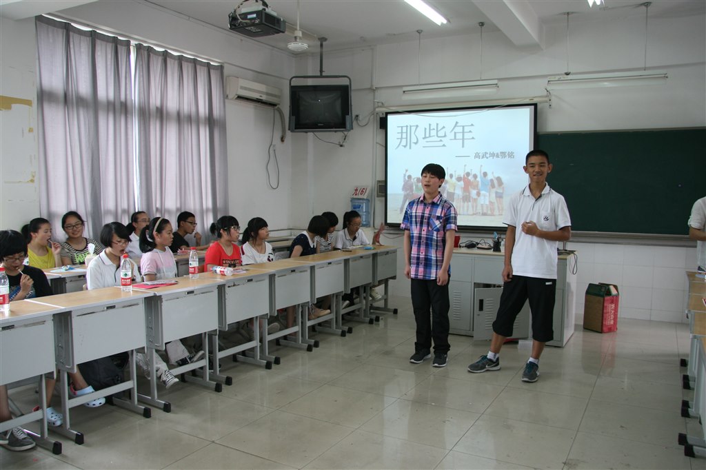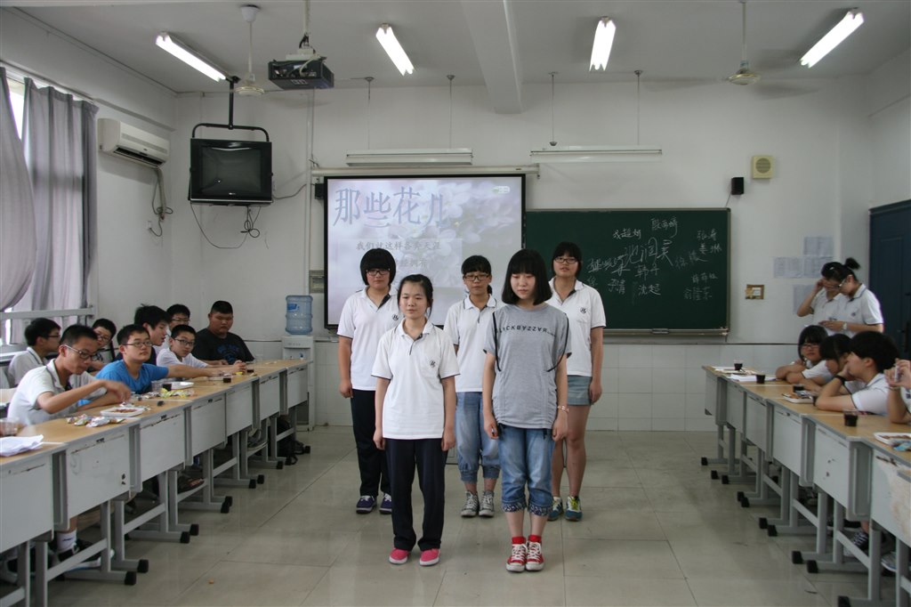 一曲轻柔的《那些花儿》,将我们带入回忆的河流。在这条长河中,我们拾起一片片美丽的贝壳。同学们在交流的过程中,时不时响起欢声笑语。陈文和汤晗带来的相声《同桌的你和我》,细数了我们班的点点滴滴,调侃了老师一把。接下来的歌曲《青春纪念册》,青春洋溢,让我们嗅到青春的清新。
