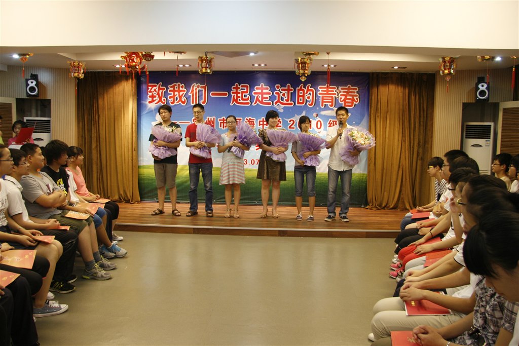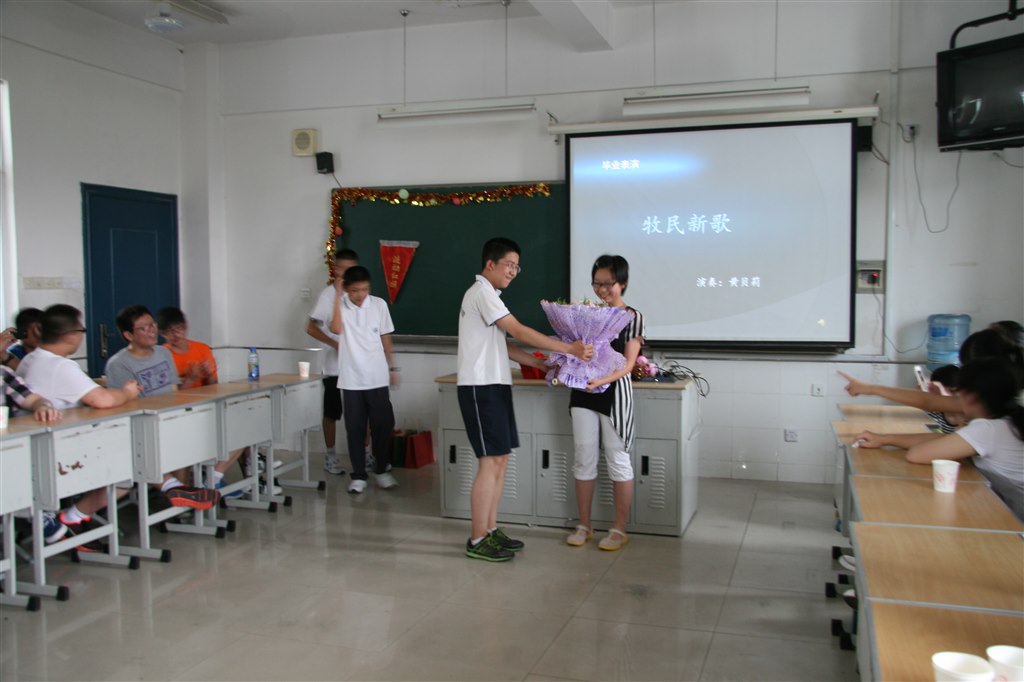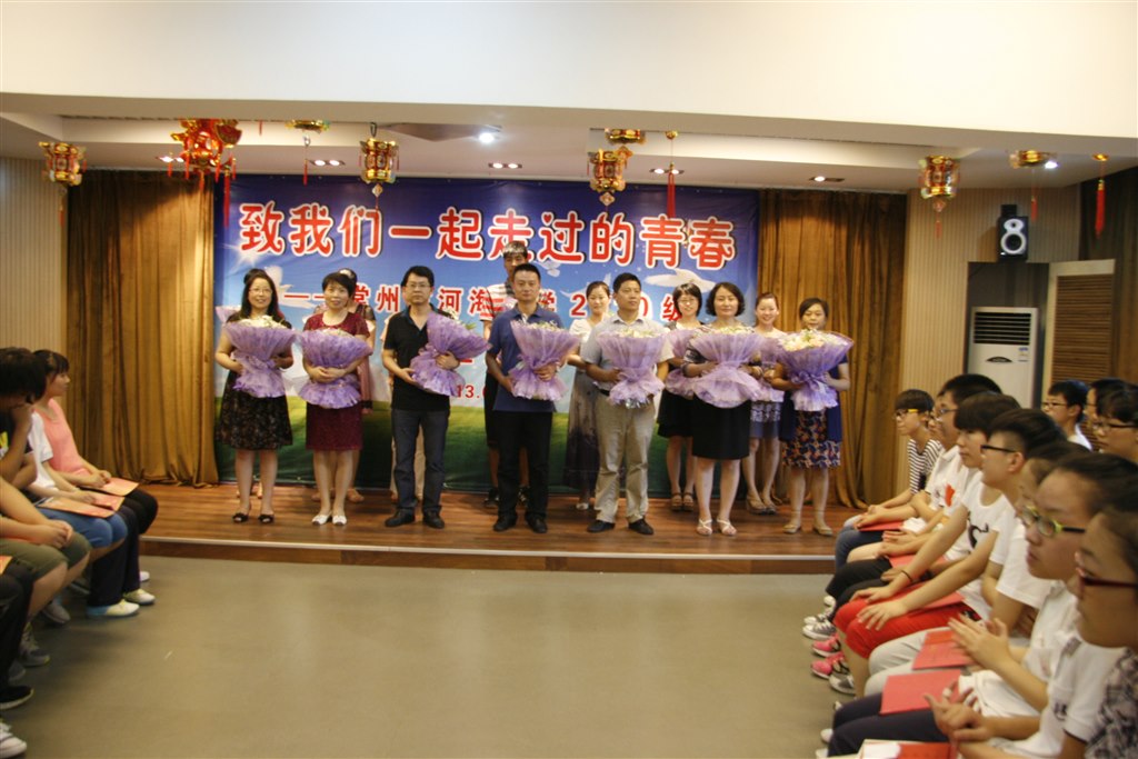 三年中,伴随着同学们一起成长的还有一群默默耕耘、可亲可敬的老师,同学们同样把献花和掌声送给了他们。声声的叮咛中,饱含最真诚的祝愿,模糊的泪光中,铭刻最感动的记忆。