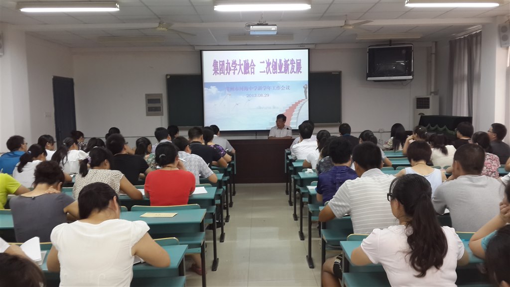 河海中学自2007年创办至今,已走过风雨兼程的六个年头,面对已取得的成绩、集团一体化办学的背景,任何停顿和倒退都没有出路。围绕“集团办学大融合,二次创业新发展”这一主题,校长蒋顺国作了讲话。他指出,大融合为了新发展,新发展必须大融合,站在新的起点,开启河海中学的第二次创业。