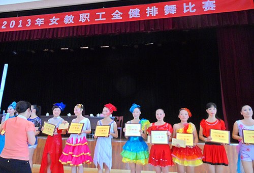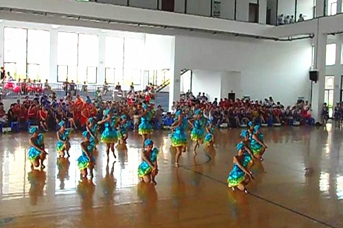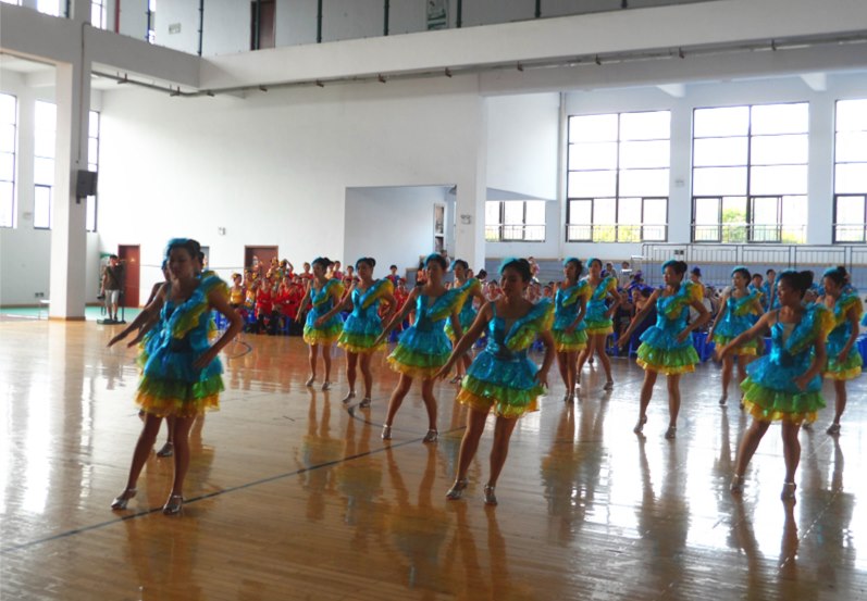 河海中学代表队由16位女教师组成,参赛曲目为《摇摆时钟》、《天使之心》、《5678》。队员们利用暑假和教学工作之余,挤出平时休息时间集中排练:有的队员刚开始动作不到位、节奏跟不上,耽心跳不好,拖集体后腿,经常一有空就向其他队员请教学习;也有的队员经常相互切磋,为了同一个动作的整齐划一逐个交流指导……从基本舞步到队形编排,一个月的艰苦训练,一个月的用心研究,全体队员都熟练掌握了参赛的整套动作,舞出了属于自己的精彩。最终,她们以饱满热情的精神状态、整齐优美的舞姿、变化丰富的队形发挥出了最好的水平,获得了评委和观众的热烈掌声,获得了二等奖的好成绩。