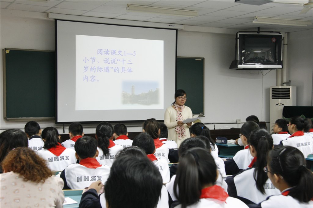 我校刘璐老师与天宁分校的何玉萍老师同题异构《十三岁的际遇》。同样的际遇,不同的精彩。刘璐老师以“速度课文,扩写一个句子”、“寻读课文,续写一个句子”、“细读课文,创造一个句子”三大板块教学,突破常规,凸显教学之新,注重培养学生的自读积累的能力。何玉萍老师则从常规教学入手,抓住“一句誓言”、“一次经历”、“一群学生”、“一批老师”这四个“一”来品读文章,侧重教学的实,注重培养学生品读感悟的能力。清晰的教学、活跃的思维、精彩的发言,在课堂上激起一阵阵高潮,让人意犹未尽。