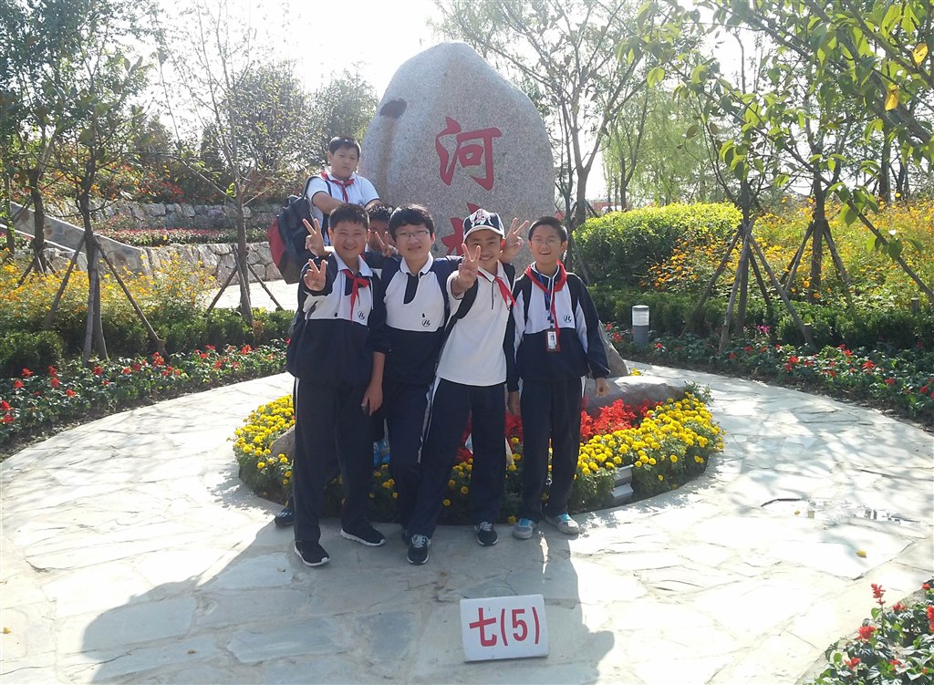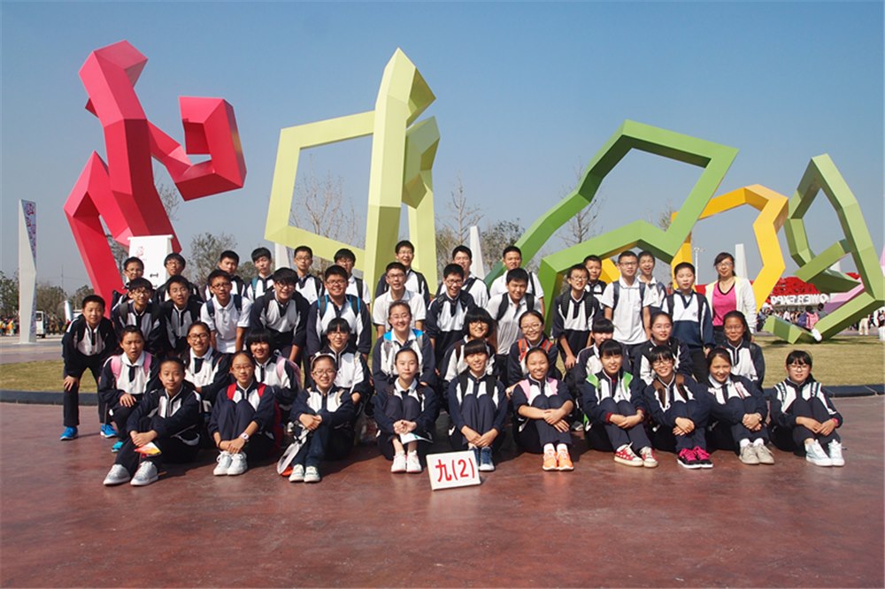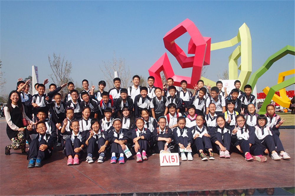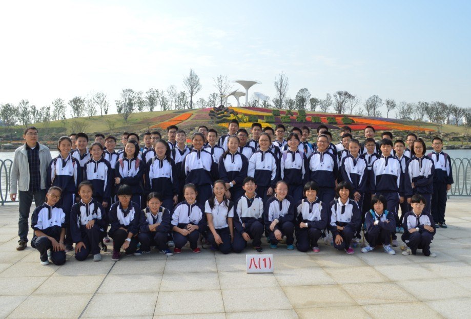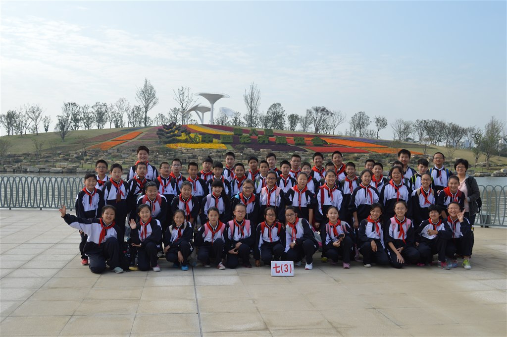 进入园区,具有美好寓意的花博会会徽矗立在广场中央,和会徽遥遥相对的是由绿草精心修剪而成的“第八届花卉博览会”几个大字,是那么夺目、壮观。 在它前方,一组花艺雕塑赫然高耸,明快的线条,鲜艳的颜色,分明的棱角诠释了强力的时代感和艺术气息。两旁是一排排别具匠心的路灯延伸向河边,与河对岸满山遍野的花海相呼相应。我们都被这一气势磅礴的大美所震撼了,各班争抢着在这宏大的巨幅前拍下了集体照。