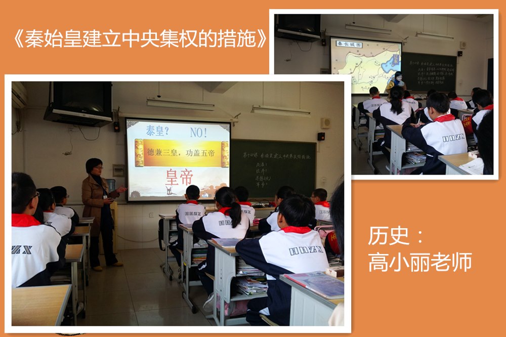 周三:许国平老师《常见的化学反应》课堂设计贴近生活,以“火”展开认识常见的化学变化,探究方式多样化,在实验中解决问题,趣味性强,学生思维活跃。高小丽老师《秦始皇建立中央集权的措施》巧用辩论答疑等多种教学手段,启发学生思维,引导学生认识历史人物功过,在思维的碰撞下掌握知识,提升认识。