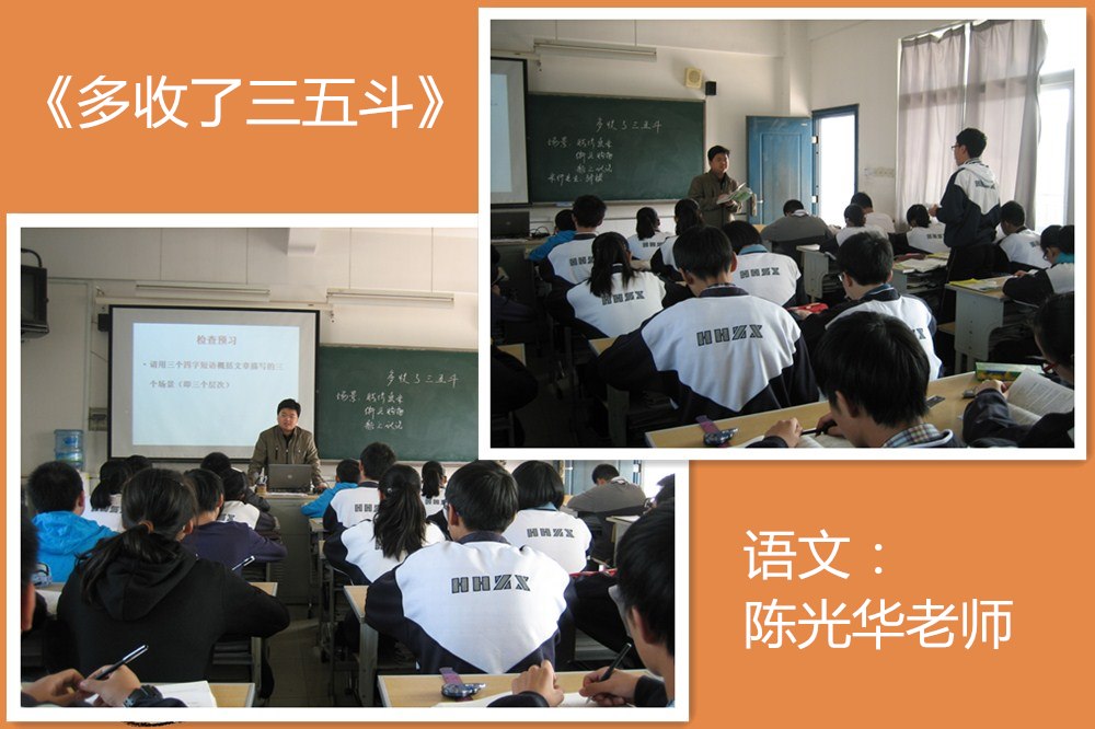 周二:王国坚老师《实数》情境创设新疑,让学生在探究中掌握新知,问题设计环环相扣,通过实践操作自我检测,分清实数提升能力。陈光华老师《多收了三五斗》长文短教,设计角度新颖多样,在品析人物中透视社会,在比较阅读中深层体悟。